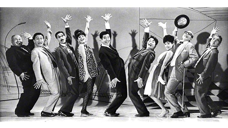 Popular jazz drummer and actor Frankie Sakai stars in this comic version of the “industrial competition” genre: two tourism companies compete for foreign clients in the run up to the 1964 Tokyo Olympics. Highlighting the coming internationalization of Japan, the film dramatizes the felt tensions between tradition and modernity, the pressures of the “economic animal” lifestyle, and the energy of high economic growth. The closest Japanese cinema ever came to the full-blown Broadway style musical, with singing and dancing on the streets of Tokyo, music by avant-garde composer and jazzman Toshiro Mayuzumi, lyrics by renowned poet Shuntaro Tanikawa.